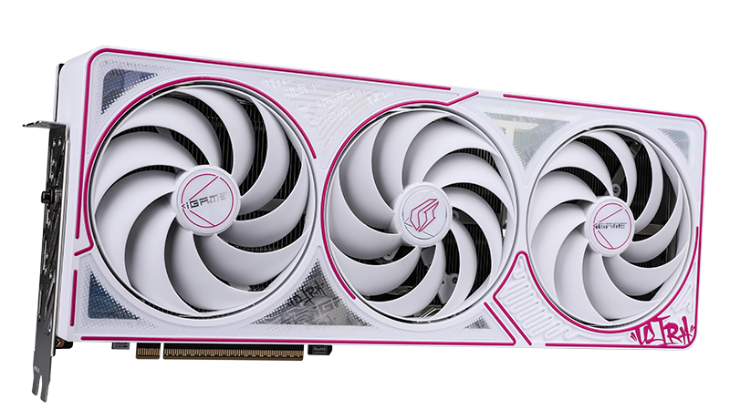 这其中 GeForce RTX 50 世代的 iGame Ultra 便以嘻哈文化为灵感设计,导入白底点缀桃粉的配色方案,拥有珠光渐变和贯穿式 RGB 灯组。