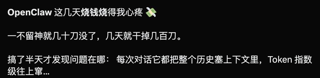 有网友的OpenClaw,一天“吃饭”需要花400块。