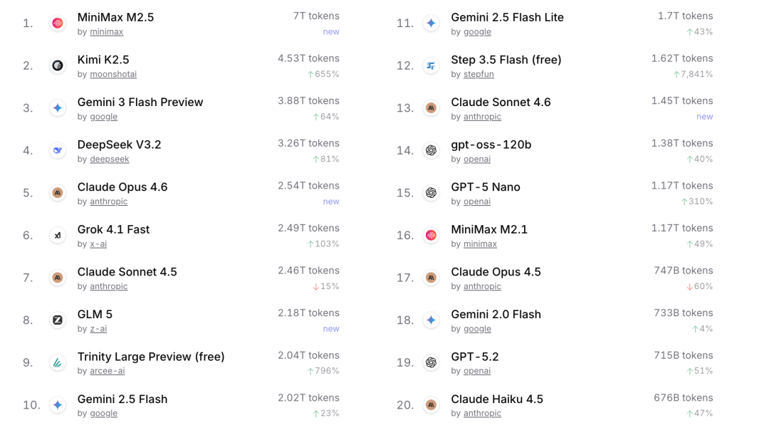 作为个人开发者平台,OpenRouter的数据或许不能说明全部问题,但至少提供了一个在同一标准下的参考样本。