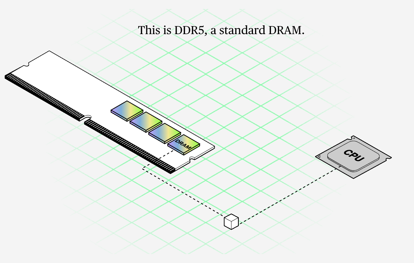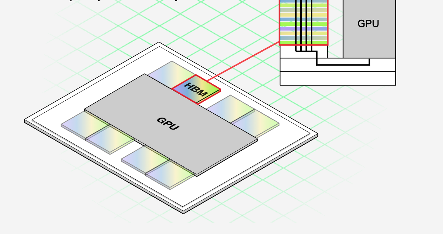 AI 的兴起催生了 DRAM 芯片的全新封装方式:高带宽内存 (HBM)。该技术通过垂直堆叠多层内存颗粒 (即存储数据的独立硅片),并将其紧邻处理器放置,相较传统内存可大幅提升数据传输速度。