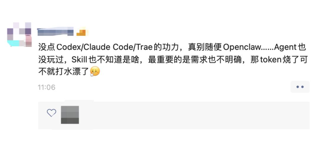 而在小芽看来,一个连小龙虾都不会装的人,也不太可能有通过小龙虾赚钱的能力。基于相关考虑,他没有长期应用下去。小芽的这一观点,被我转述给一些从业者,赢得了广泛认同。
