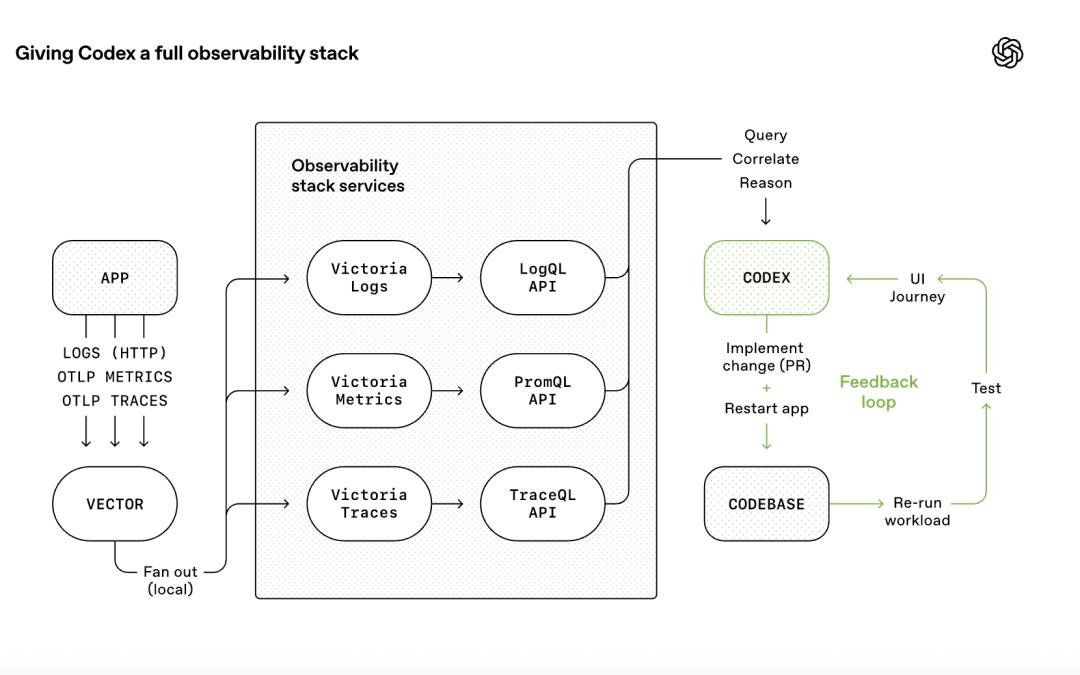 为此,OpenAI 给 Codex 接入了一整套 可观测系统(Observability)。