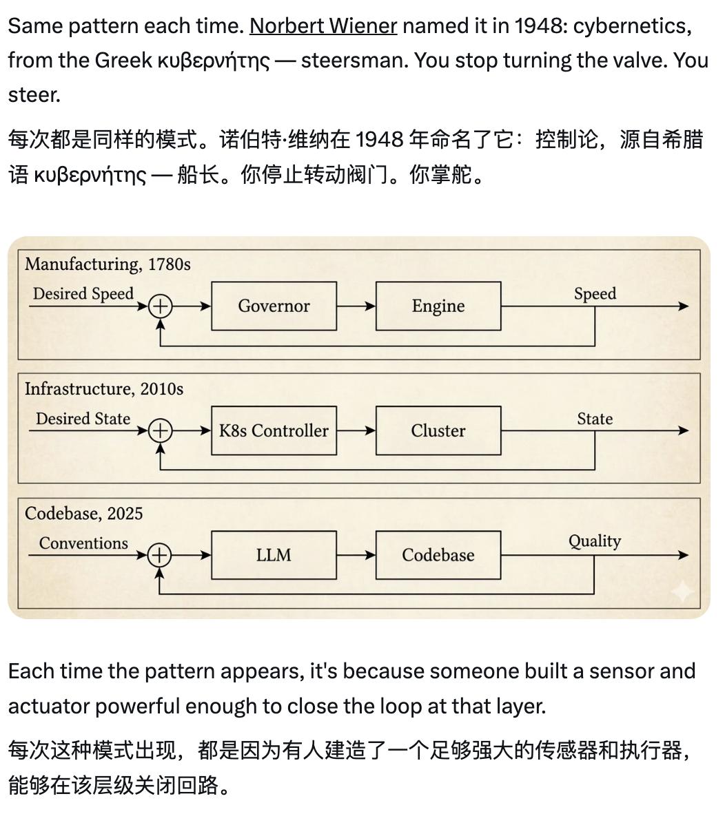 从瓦特蒸汽机的调速器,到 Kubernetes 的控制器,再到今天的 AI agent;真正的变化不是“机器替代人”,而是 人的角色,从执行者变成系统的设计者和校准者: