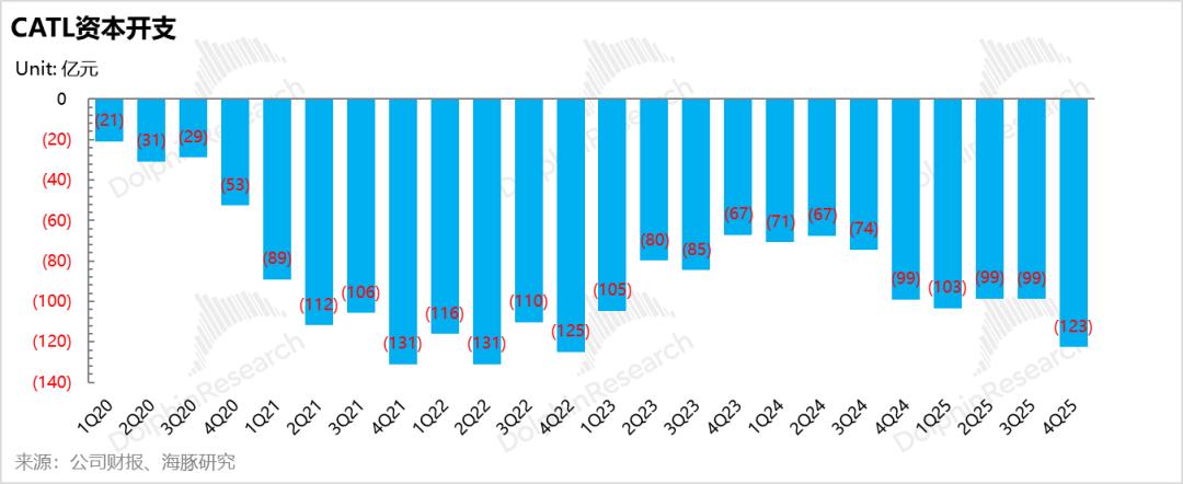 ② 资本开支还再进一步高增:自2024年四季度开始,宁王就开始增加了资本支出,而本季度资本开支又达到了接近上一轮扩产巅峰期的水平(123亿),资本开支再进一步加速。