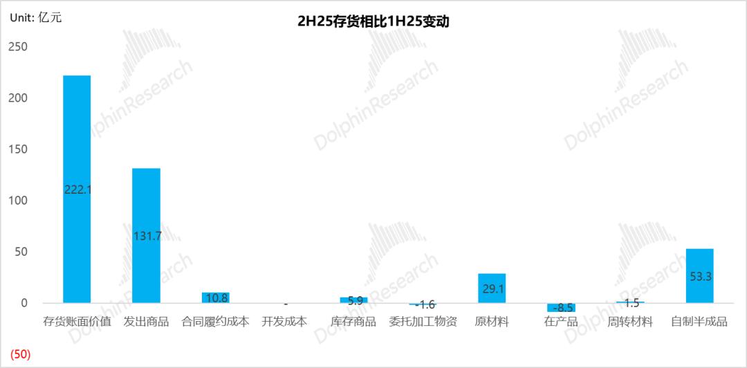 从存货的结构来看,2025年下半年新增的222亿元存货,其中有60%都是发出商品,核心原因也是由于储能系统级交付占比提升,导致在交付途中的货品变多。所以宁王账上有很多是已发货、待开票的“待确认收入”。