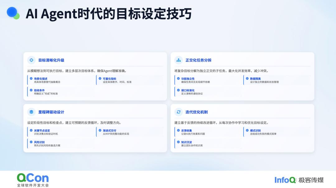 在与 AI 协同工作的过程中,目标设定是至关重要的第一步。很多人会问,如何设定目标?其实,核心方式就是通过精确的表达来传达需求。过去,在使用通用聊天机器人如 ChatGPT 时,我们常常需要通过复杂的提示词框架来引导机器人完成特定任务,比如编写代码。那时的提示词可能包含身份定位、角色设定以及各种指令,甚至有些奇奇怪怪的框架。然而,如今进入 Agent 时代,情况发生了变化。这是一个场景化协作的时代,需求表达变得更加直接和关键。我们不再依赖复杂的提示词技巧,而是要清晰地表达自己的需求。