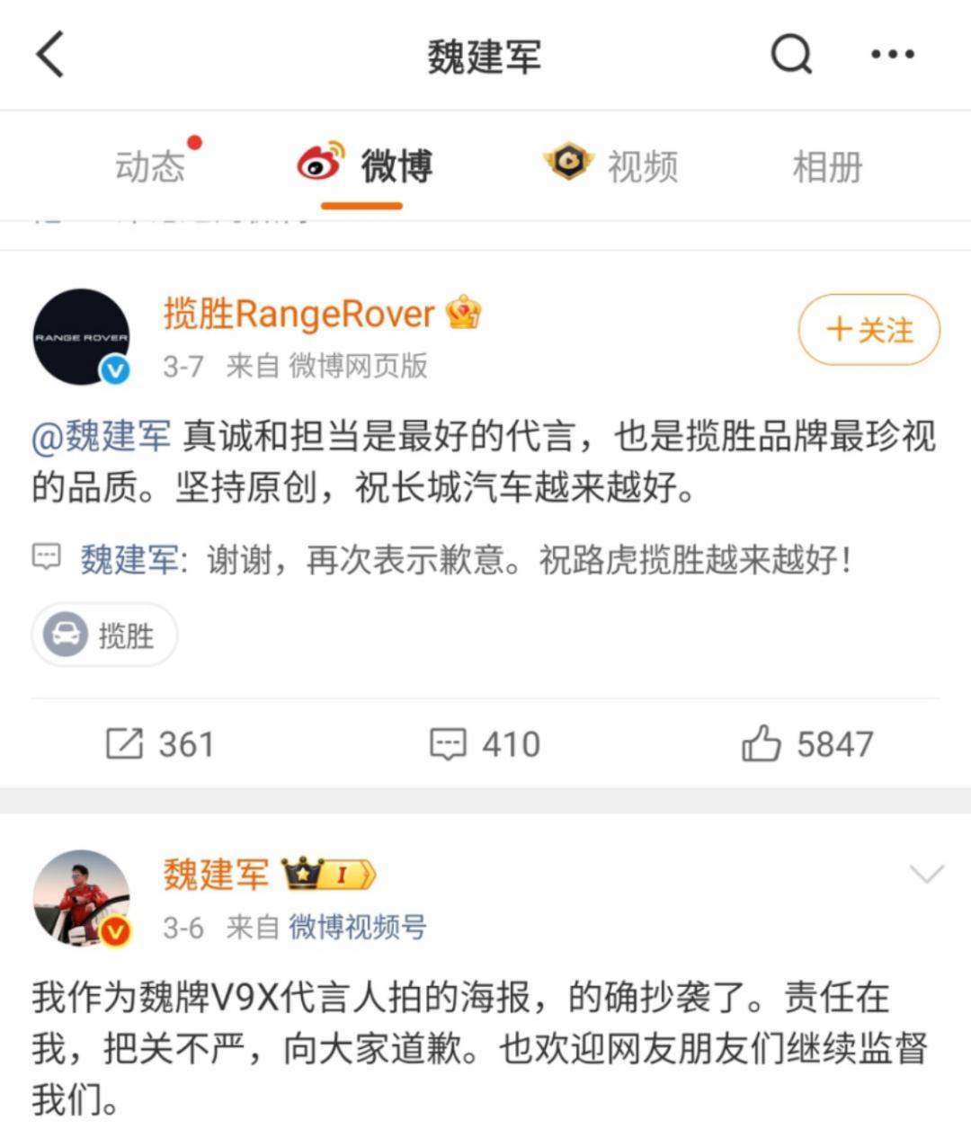 虽然魏建军以代言人的身份迅速承担责任并致歉,令事件很快得以平息,甚至赢回部分口碑,但是这一风波仍不可避免地影响到产品的传播节奏。而且,作为高端品牌,魏牌本应建立更完善、更严谨的工作流程,而让“董事长兼代言人”去承担核实创意来源的工作,表明这套相关流程仍有漏洞。