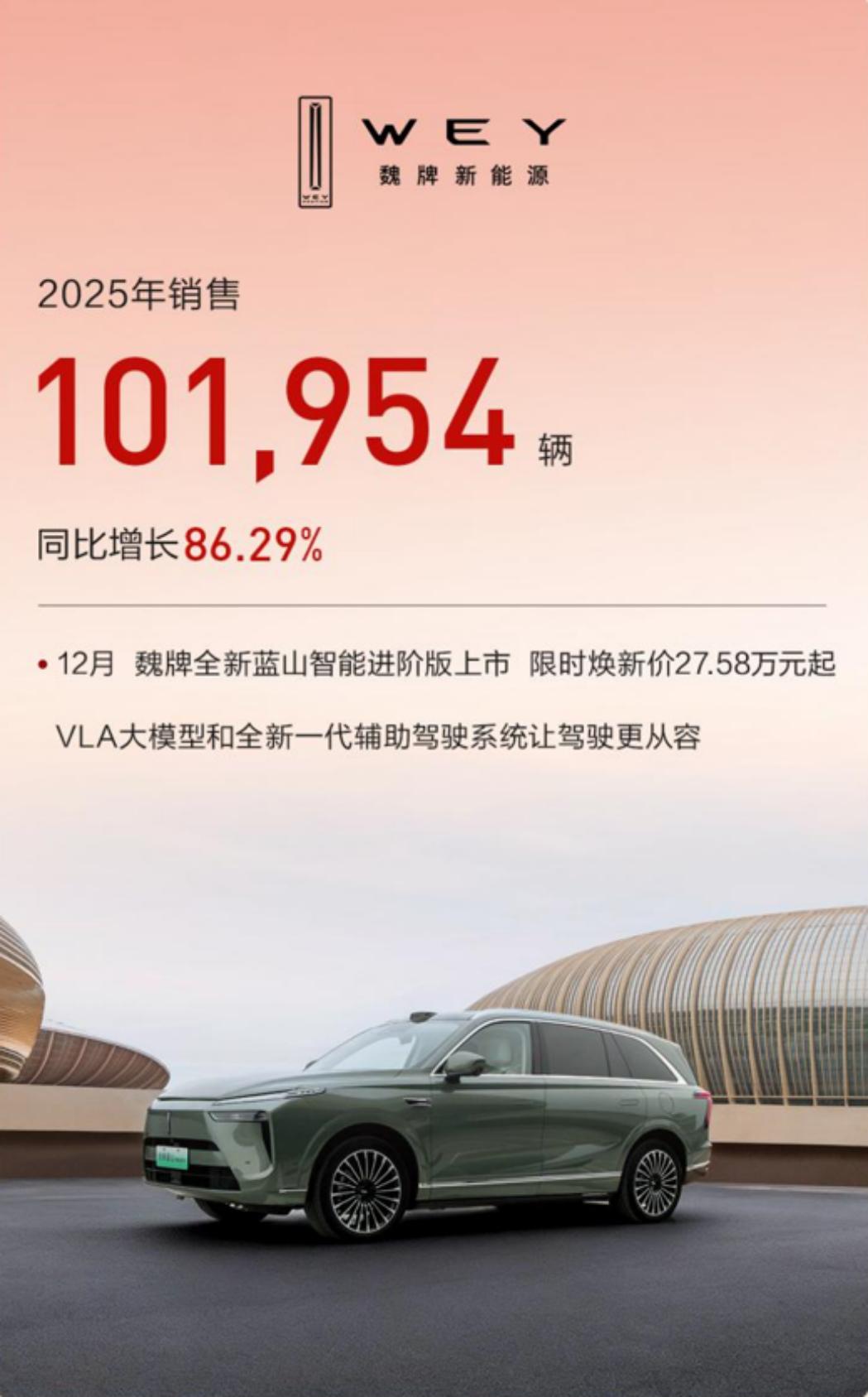 从长城汽车整体业绩来看,2025年表现稳健,全年销售新车132.37万辆,同比增长7.33%,其中新能源车型销售40.37万辆,同比增长25.44%,新能源渗透率持续提升,展现出良好的发展韧性。
