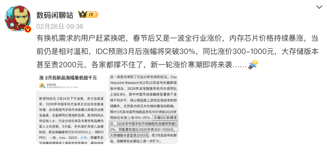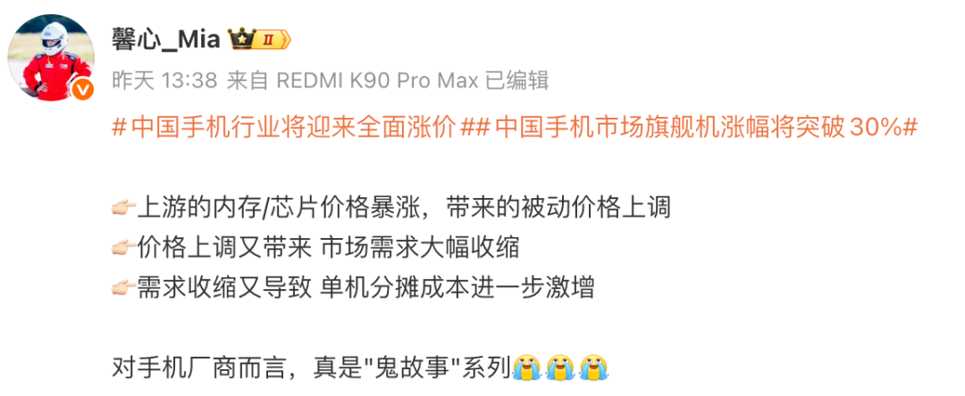 供应链价格的持续暴涨,犹如一颗深水炸弹,再次引爆了刚开年的机圈。