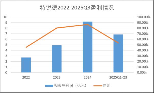 相比之下,母公司特锐德的业绩就要漂亮很多。华夏能源网注意到,2022年特锐德实现归母净利润2.72亿元,同比增长45.43%;2023年归母净利润4.91亿元,同比增长80.44%;2024年,归母净利润更是创下9.17亿元高点,同比增长达86.62%;2025年前三季度,特锐德又实现盈利6.86亿元,同比增长53.55%,再创业绩新高。
