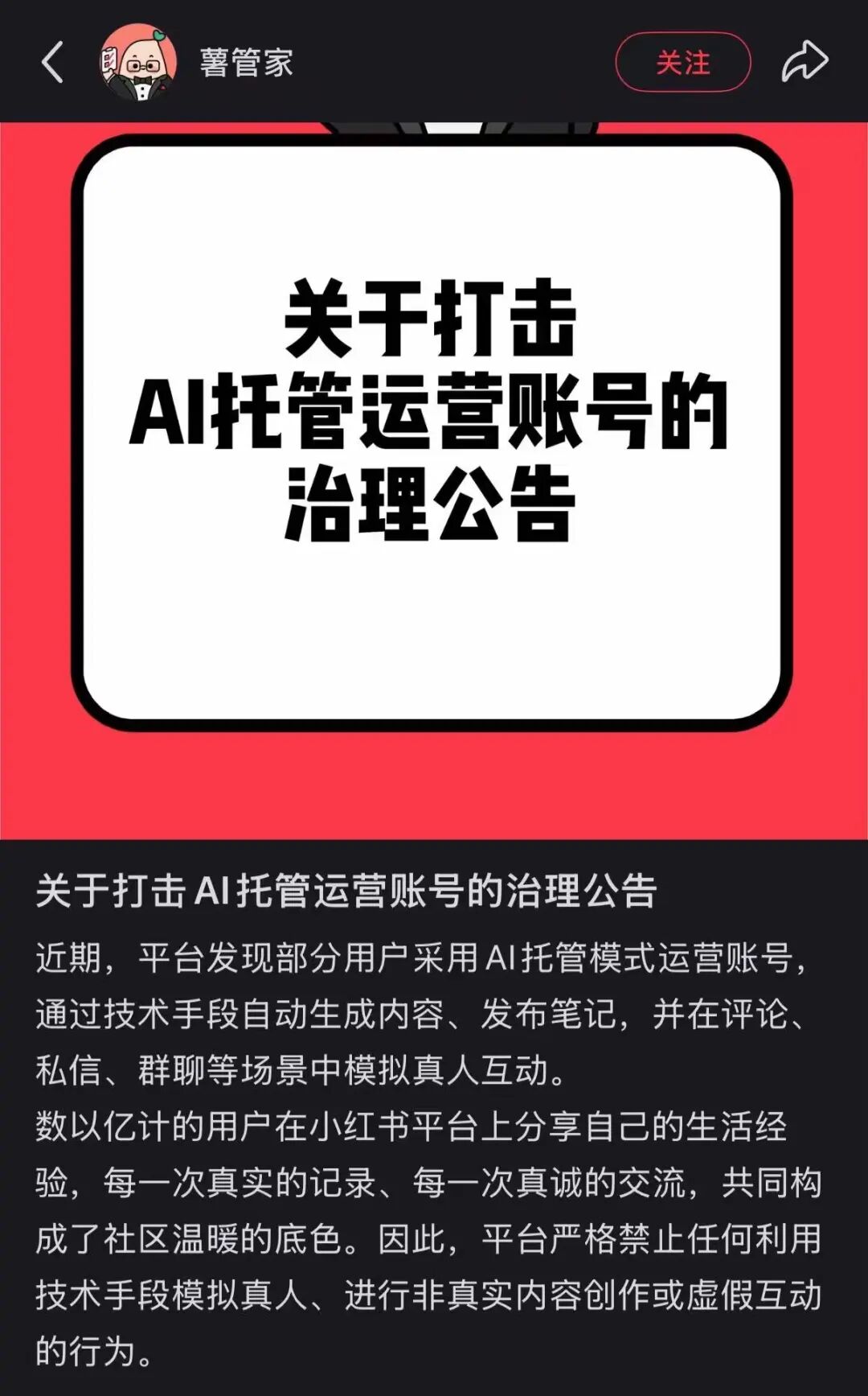与此同时,国内社交平台也针对AI社交“出手”了:小红书紧急发布公告,严格打击AI托管账号。一边是全球最大社交巨头主动入局,一边是国内社交平台被迫筑起防线——两件事同日发生,并非巧合,而是同一股浪潮拍打在不同海岸上的回响。
