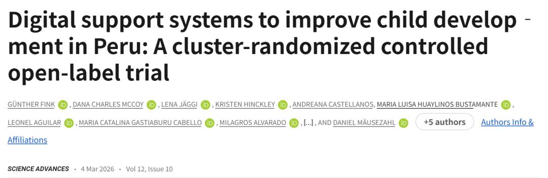 来自瑞士热带与公共卫生研究所的团队及其合作者在秘鲁农村开展的一项大规模随机对照试验显示,AI 数字干预不仅显著促进了儿童早期发展,其成本更是仅为传统方式的 1/15,展现了惊人的成本效益。