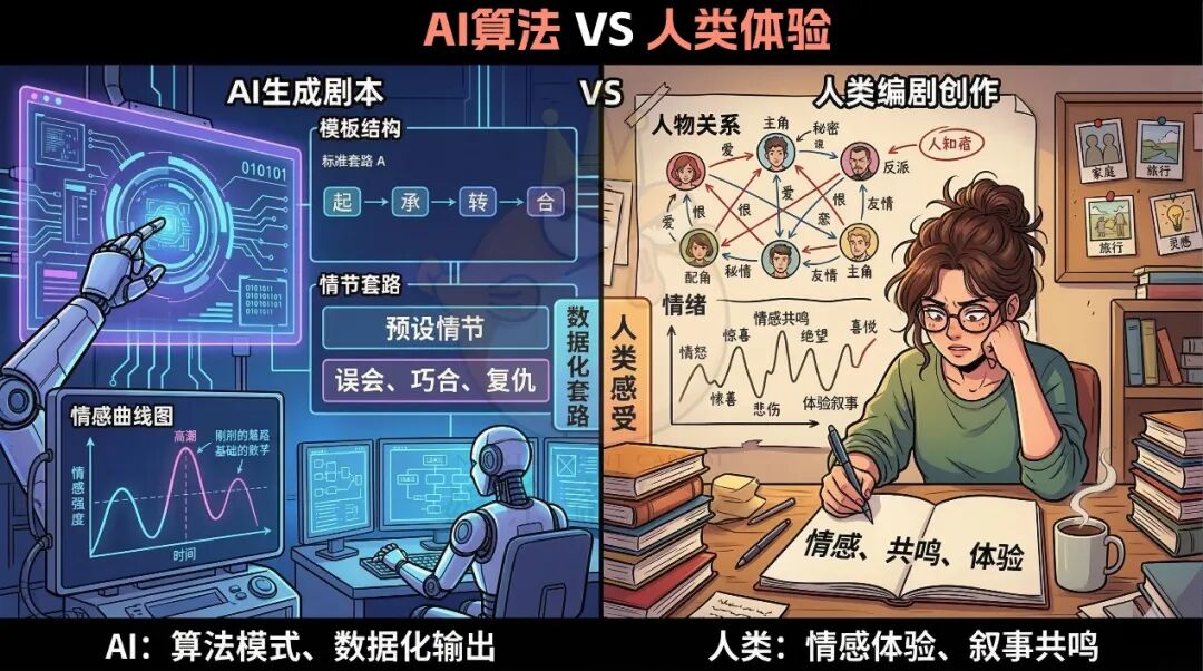 对于依赖独特体验与情感表达的剧本创作来说,真正决定作品价值的仍然是创作者的感受与判断,而不是生成速度。只要长剧创作仍然建立在人物成长、情感积累与复杂社会经验之上,AI就很难真正成为创作的主导者。