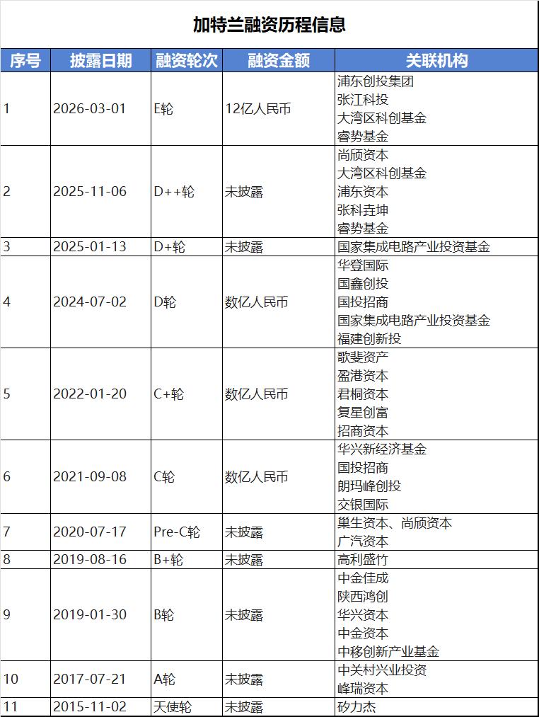 此外,在辅导备案之前,即2026年3月,加特兰完成规模达12亿元的E轮融资,本轮融资后,公司估值正式突破百亿元大关,成功跻身国内毫米波雷达芯片领域的“独角兽”企业行列。