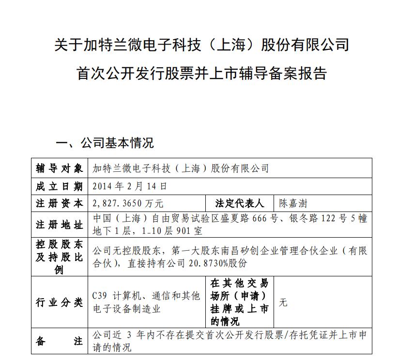 近日,加特兰微电子科技(上海)股份有限公司(以下简称“加特兰”)在上海证监局完成IPO辅导备案登记,正式启动上市进程,辅导机构为中金公司。