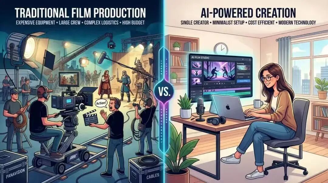 去看看那些真正在拥抱AI的创作者吧。编剧用AI生成分镜脚本,省掉画草稿的半天功夫,多出来的时间琢磨台词;导演用AI预演复杂场景,不用把演员拉去沙漠折腾三天,就能先看效果;后期用AI补背景、修穿帮,不用一帧一帧抠图,省下的预算可以请更好的配乐。这才是AI该有的样子。
