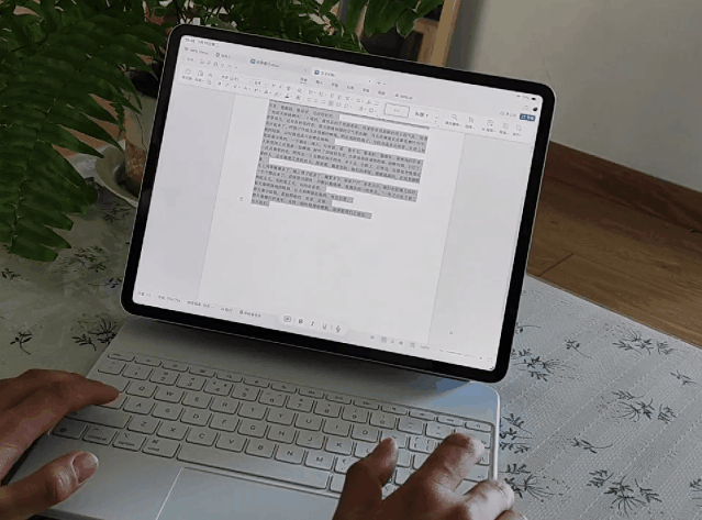 外接键盘时,PC 端的全量快捷键都能完整支持,打字输入与文本编辑的响应速度,和使用电脑办公没有任何可感知的区别,即便是 PPT 制作场景,拖拽元素、调整动画的操作流畅度,甚至优于电脑端触控板的操作体验。