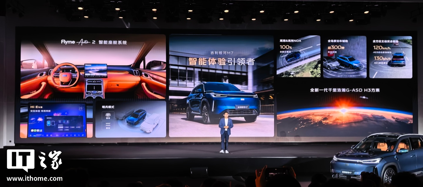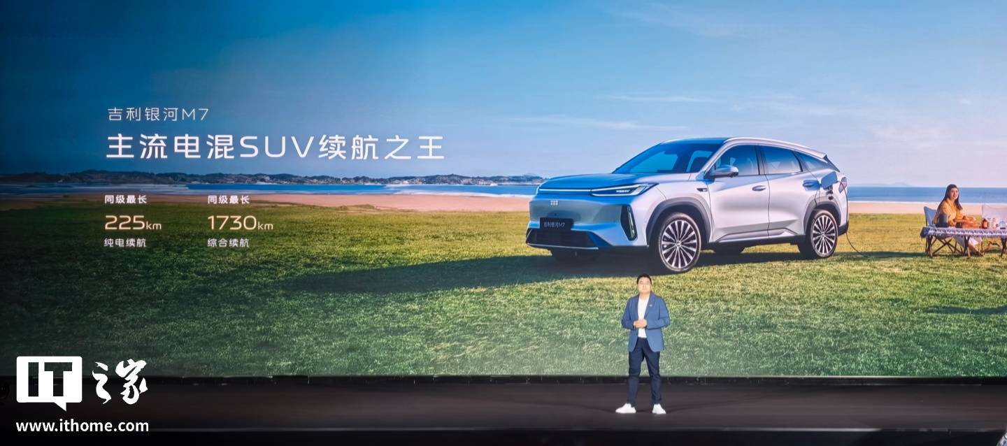 IT之家 3 月 13 日消息,今天晚间,吉利银河 M7 正式迎来产品技术首秀亮相。新车是银河 M 系列首款中级电混 SUV,将于今年 4 月正式上市,纯电续航 225km,综合续航可达 1730km(IT之家注:未公布价格)。