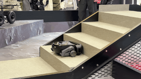 而今年的 AWE 的现场,石头也把今年一月刚在CES亮相过的爬楼扫地机器人也带来了。