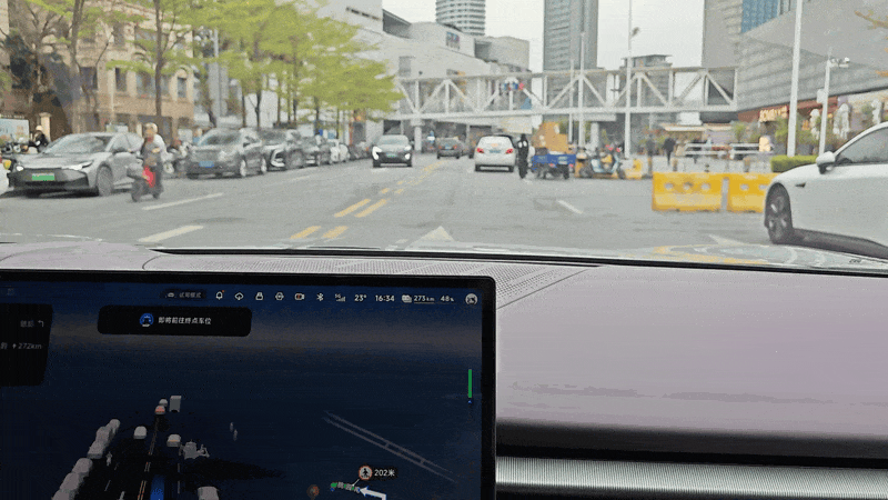 系统不是猛刹,也不是慌乱避让,而是轻微减速大概1秒,确认安全后继续正常走,整套动作非常自然。