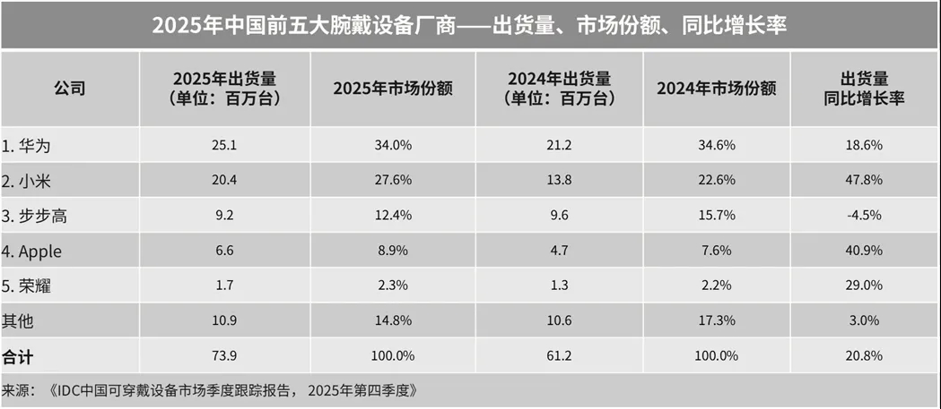 5.2025年中国腕戴设备市场出货量7390万台,增长20.8%