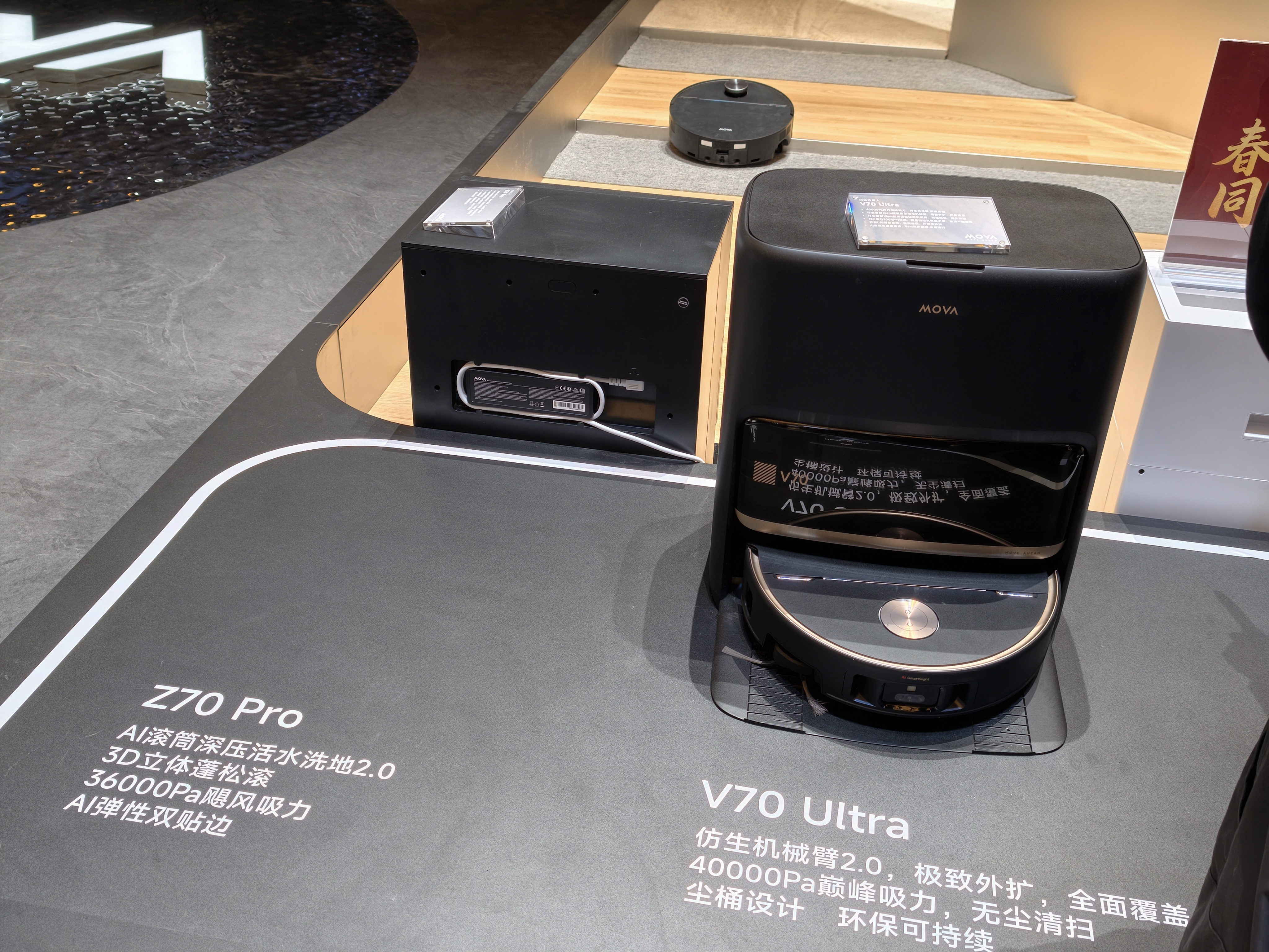 追觅和MOVA的洗地机,则在力拼「扫得净」。雷科技在追觅展馆看到,凭借新一代机械臂技术,追觅T70系列可以更加轻松地清理大颗粒垃圾,清洁面积也得到进一步扩大。得益于伸展距离冲到16cm的仿生拖布机械臂,MOVA V70 Ultra不仅能覆盖常规的直角墙边,还能在弧形桌腿、不规则家具边缘实现物理层面的紧密贴合,死角覆盖率达到上一代外扩产品的3倍。