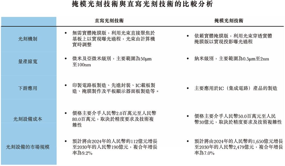 根据灼识咨询的资料,直接成像及直写光刻设备是集成电路及相关产业价值链中最关键及最精密生产工艺之一的核心设备。