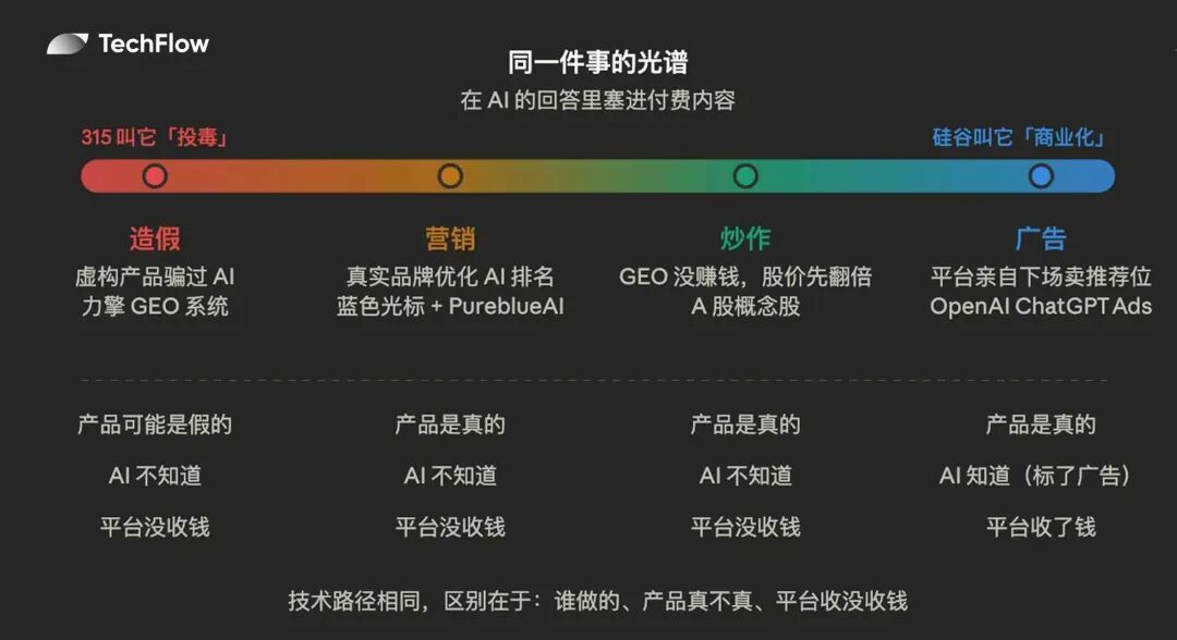 AI 分不清哪个是营销,哪个是造假。这也是 GEO 这门生意最暧昧的地方。