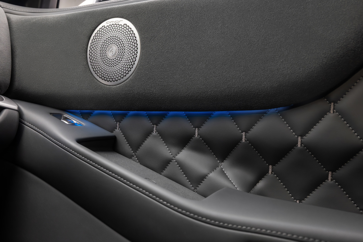 该车搭载 Coffee AI Sound 殿堂声音响系统,31 个扬声器 8.1.4.8 音响布局,音响峰值功率 3080W,支持杜比全景声,声场分区。此外,该车还配备 21.4 英寸 4K 后排智慧屏、前排双 17.3 英寸 3K 智慧屏、智能电动隐藏式空调出风口、车载冰箱、全车电动电吸门等配置。