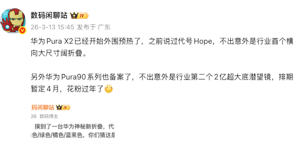 至于机友们比较期待的阔折叠华为 Pura X2,从目前的消息来看,似乎赶不上这次发布会。