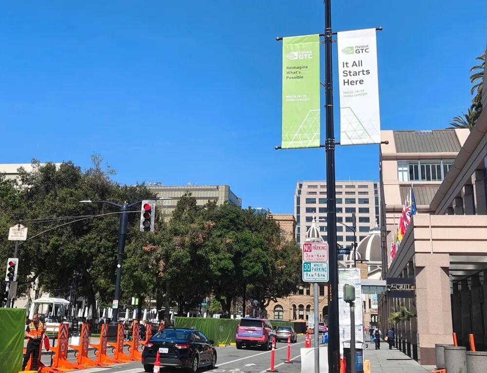 ▲ 英伟达一年一度的GTC大会召开在即,圣何塞会展中心周围随处可见路边GTC的标语“It All Starts Here”(一切从这里开始)