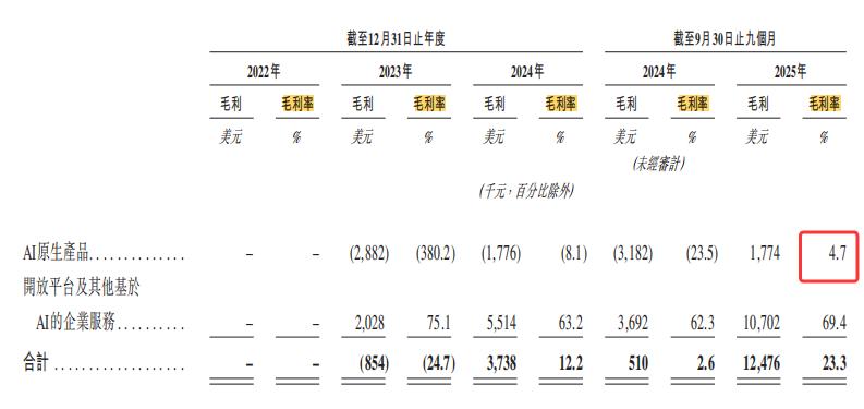 然而,巨大的用户规模并没有换来可观的利润。招股书数据显示,尽管Talkie/星野贡献了公司超过三分之一的收入,但其毛利率却低得惊人,只有4.7%。这是什么概念?可以对比一下,MiniMax卖给企业用的AI服务,毛利率高达69.4%。
