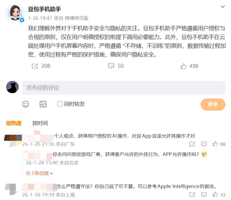 不过,豆包手机的GUI Agent技术,需要获取极高的系统权限以实现模拟点击、滑动和输入操作,从而引发了巨大的隐私争议,甚至互联网平台的封禁。阿里系旗下淘宝、闲鱼、大麦等应用,以及微信、小红书等社交平台使用豆包手机时都会出现登录异常。有行业人士指出,模拟操作的方式,和黑产群控、外挂脚本的运行逻辑高度相似,平台会担心权限滥用会引发账号被盗、资金欺诈、隐私泄露等风险。不过,也有安全研究人员认为,豆包手机这种风控识别问题并不是很难解决。
