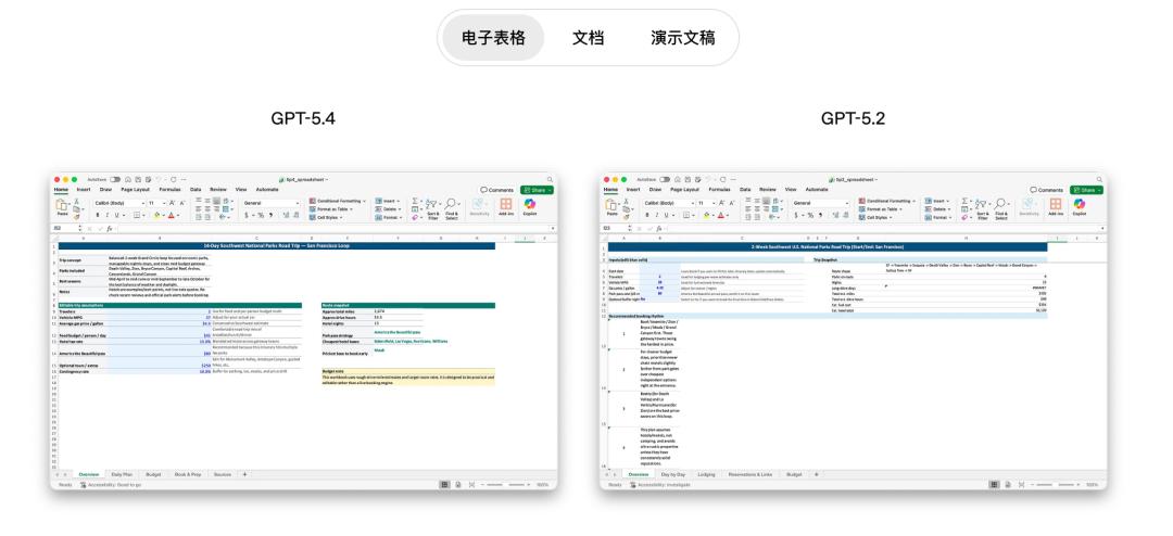 无论是写报告、做财务模型、制作演示文稿、分析商业数据,对于这类典型的知识型任务,GPT-5.4都进行了专门优化。