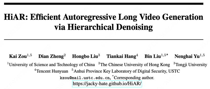 论文标题:HiAR: Efficient Autoregressive Long Video Generation via Hierarchical Denoising