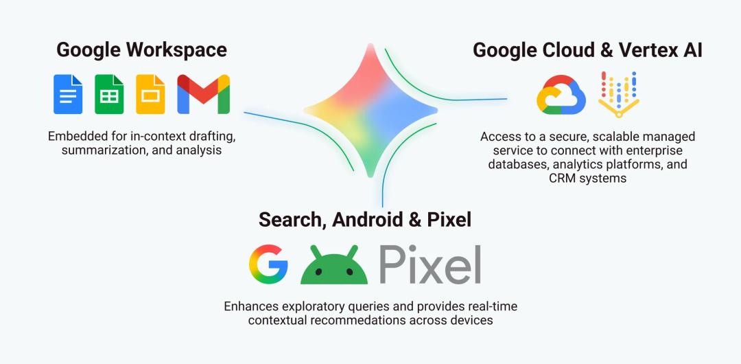 Gemini背后连着Google搜索、Workspace、Cloud和Vertex AI,很多时候它不需要“重新教育用户”,因为它本来就在用户的邮箱、文档、搜索和云服务里面。