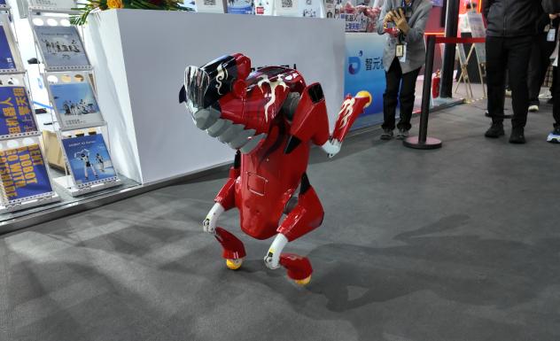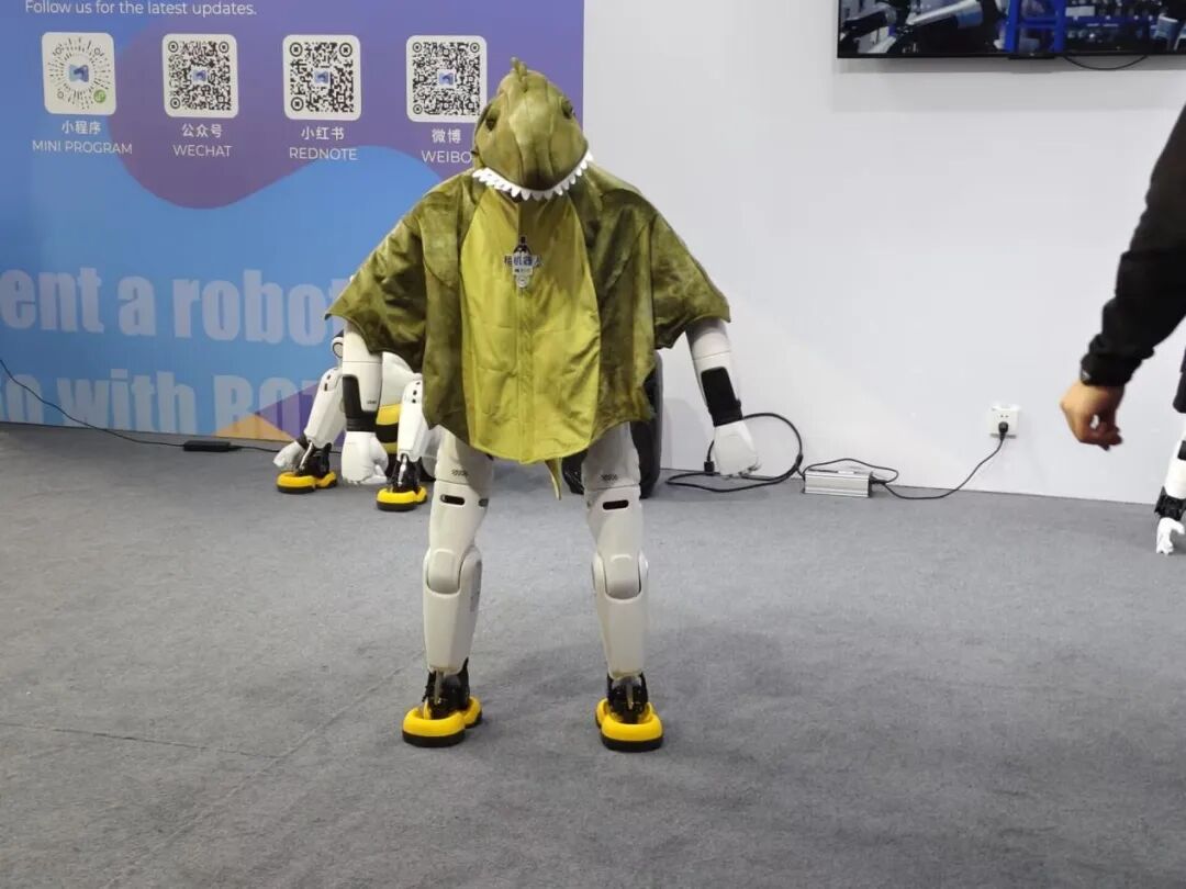 同样玩出花样的还有智元机器人旗下的酷拓D1。它不仅是四足机器人,更是“百变星君”。现场,酷拓D1装扮成了赤焰马、熊猫狗、狮子狗等多种形态,在动态舞台区完成了一系列表演。这种通过外观DIY来适应不同场景(如主题乐园、商业活动)的思路,大大降低了机器人的审美疲劳感,延长了产品的生命周期。