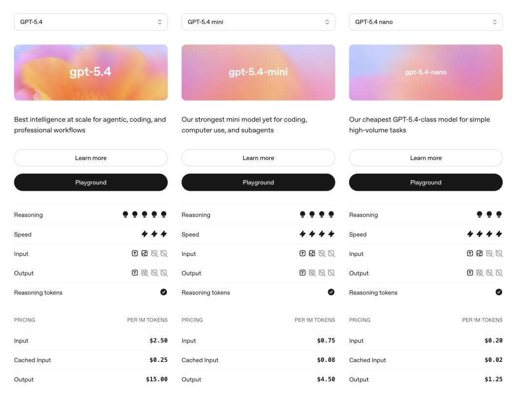 相较于GPT-5.4,mini输出价格是其1/3,而nano价格只有1/12。