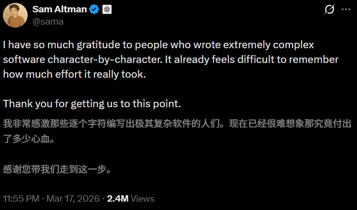 大量开发者读出了另一层意思——感谢你们的贡献,但这个活以后AI来干了。