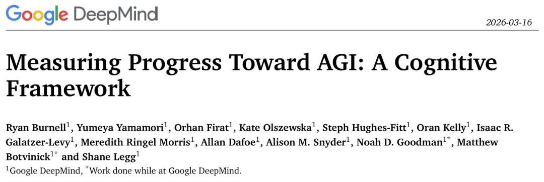 这篇名为《Measuring Progress Toward AGI: A Cognitive Framework》的论文,核心主张只有一句话:别再争AGI是什么了,先把怎么测这件事搞清楚。