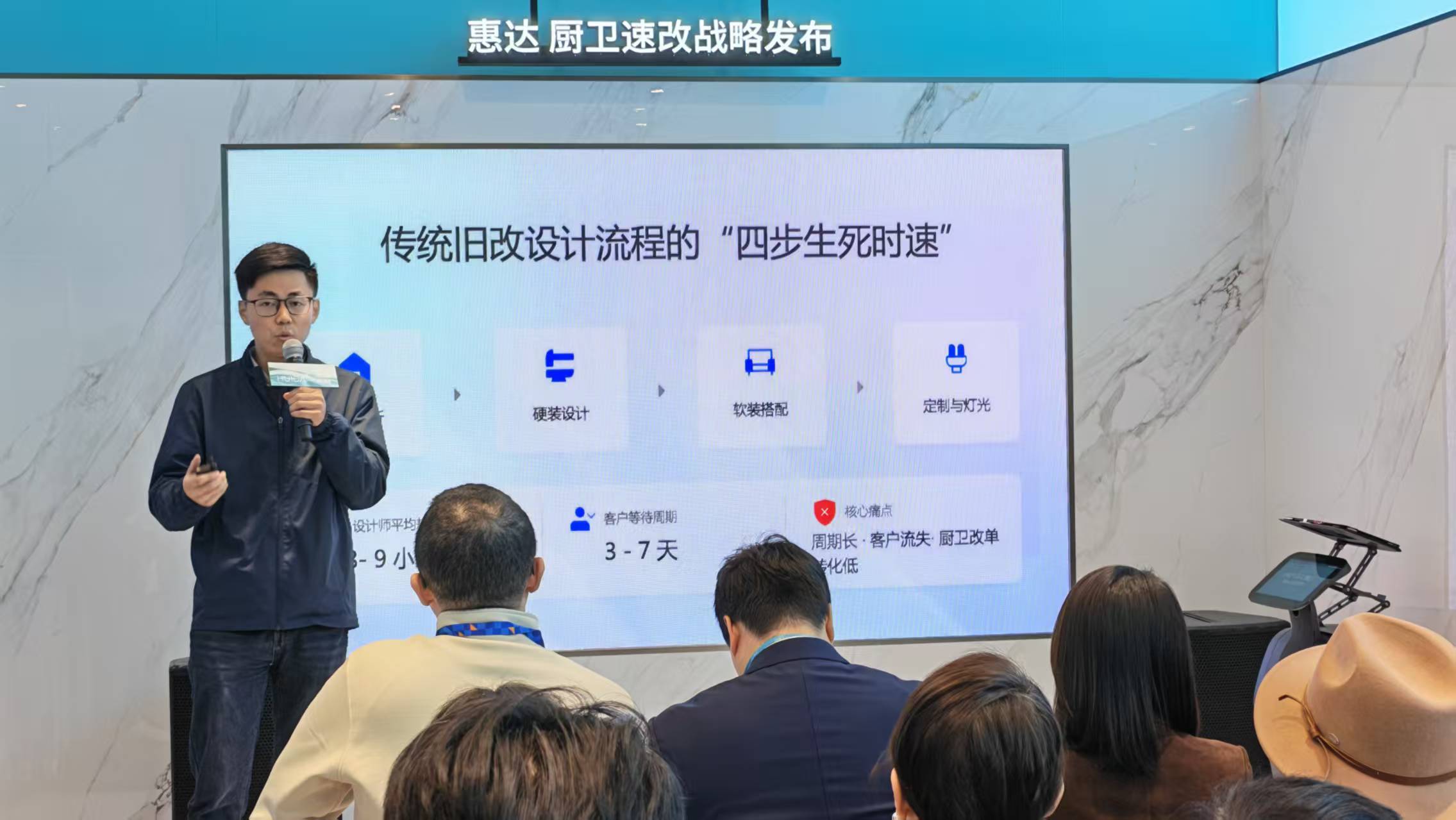 在发布会现场,惠达与群核科技宣布合作,将AI设计接入厨卫改造流程。用户只需提供户型与基本需求,系统便可以在短时间内生成完整的可交付方案。