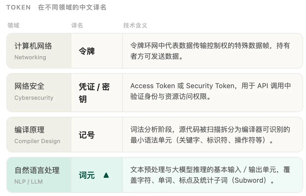其一,单就计算机科学领域内部,Token 在不同子领域,既有截然不同的含义: