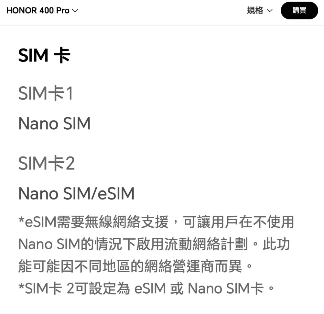 然而官网描述极为有限,eSIM 是否支持双待不明。