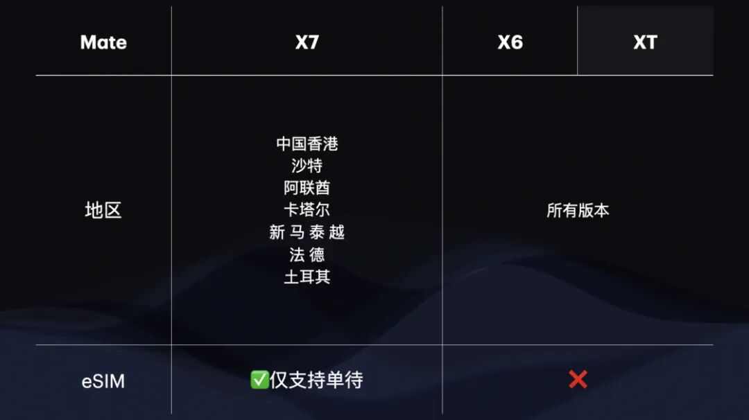 而在 Mate 系列仅有最新的折叠屏手机 Mate X7 支持 eSIM 功能。