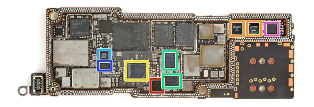 iPhone 14 Pro Max 对应主板区域照片,来自 iFixit