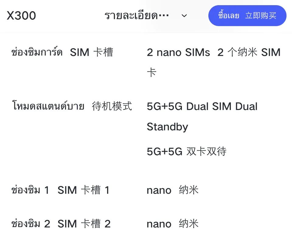 泰国官网 X300 对应介绍