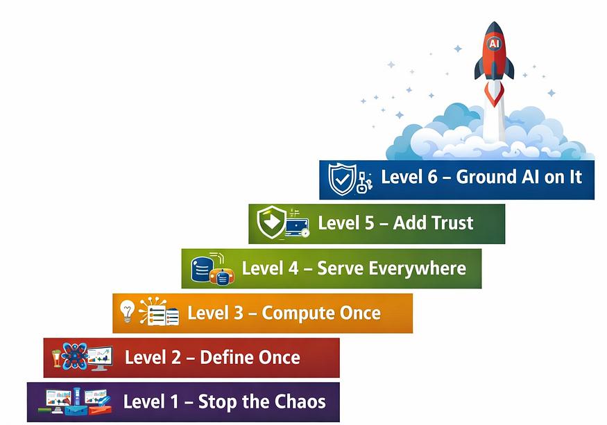 目标不是 “购买语义层” ,而是逐步完成六个成熟阶段。