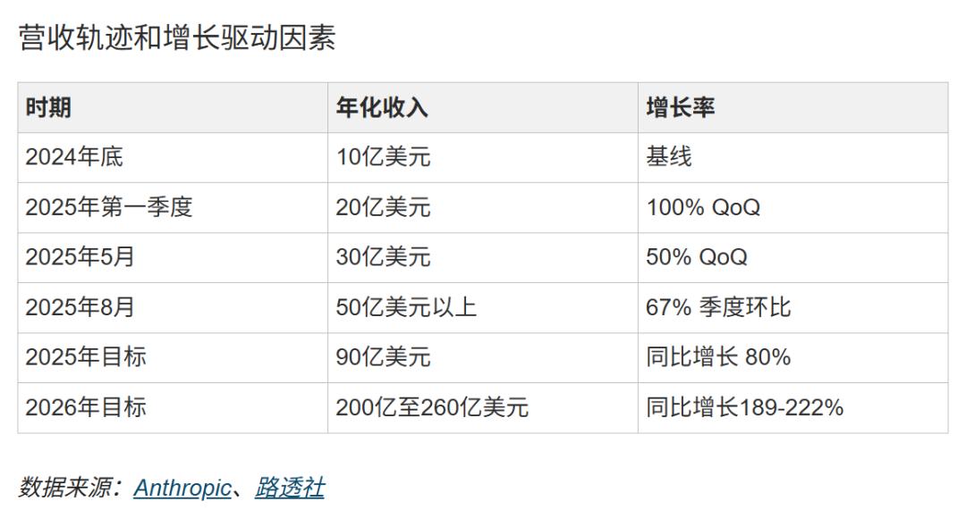 据公开信息显示,Anthropic 自成立以来不到三年时间,已实现 140 亿美元的年化收入,过去三年每年增长均超过 10 倍,预计年化收入运行率将从 2025 年底的约 90 亿美元,冲刺至 2026 年的 260 亿美元。