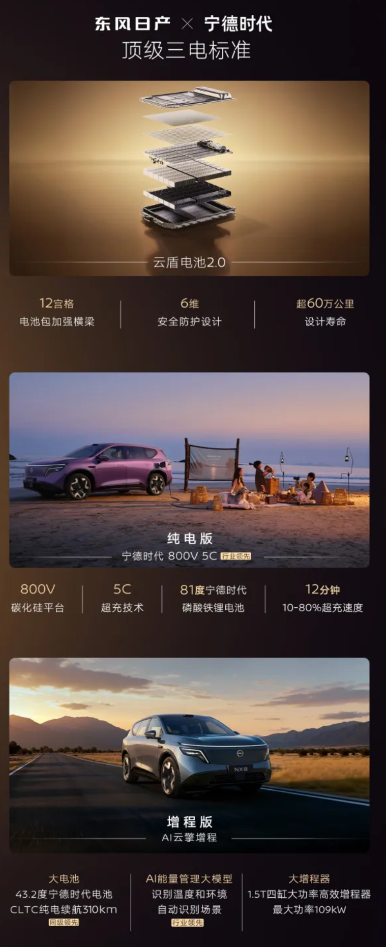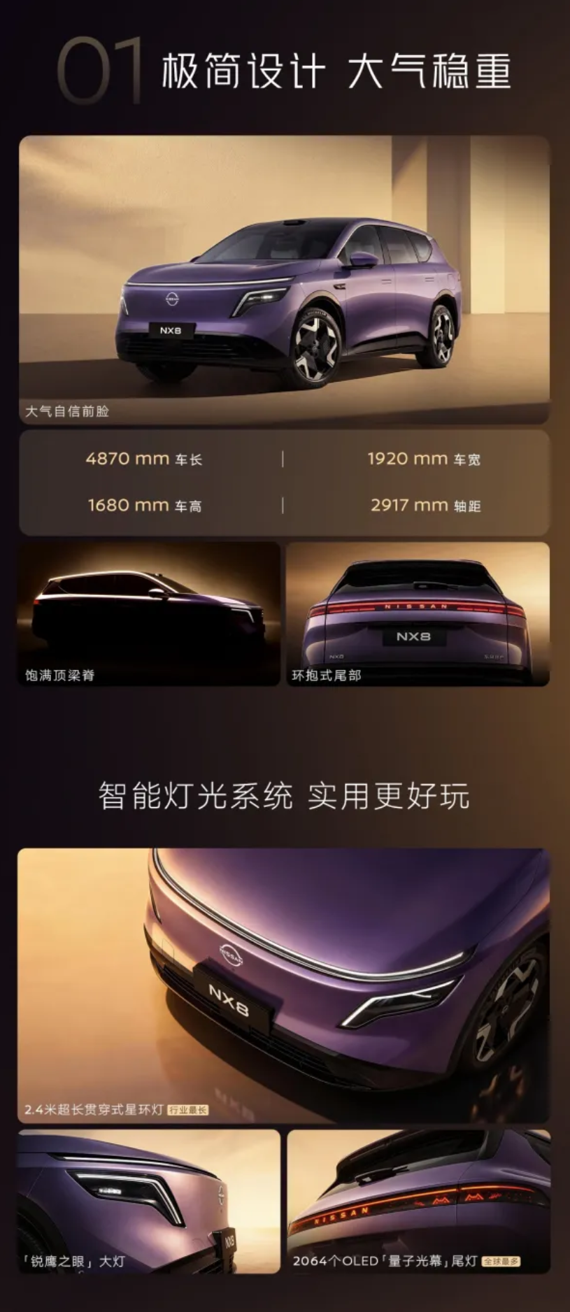 IT之家 3 月 20 日消息,东风日产 NX8 汽车现已开启预售,定位“20 万级大大大五座智慧舒享 SUV”,这也是东风日产首款增程 SUV,意向金 999 元,可抵扣 3000 元,还可享受三电终身质保 + 无套路自燃包赔,截至 4 月 8 日。