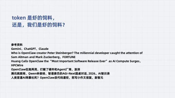 有一个尝鲜者悖论:现在最早用得爽的人,是未来最可能被替代的人。你现在用它解决很多问题解决得很好,这些任务未来都会被 AI 解决掉。你现在养的虾,别人养的虾,未来可能就成了你的替身。